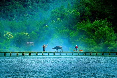 15:30前后,游览仙都摄影点【朱潭山】,走上一座古桥,说不定在此邂逅牵牛的农夫。