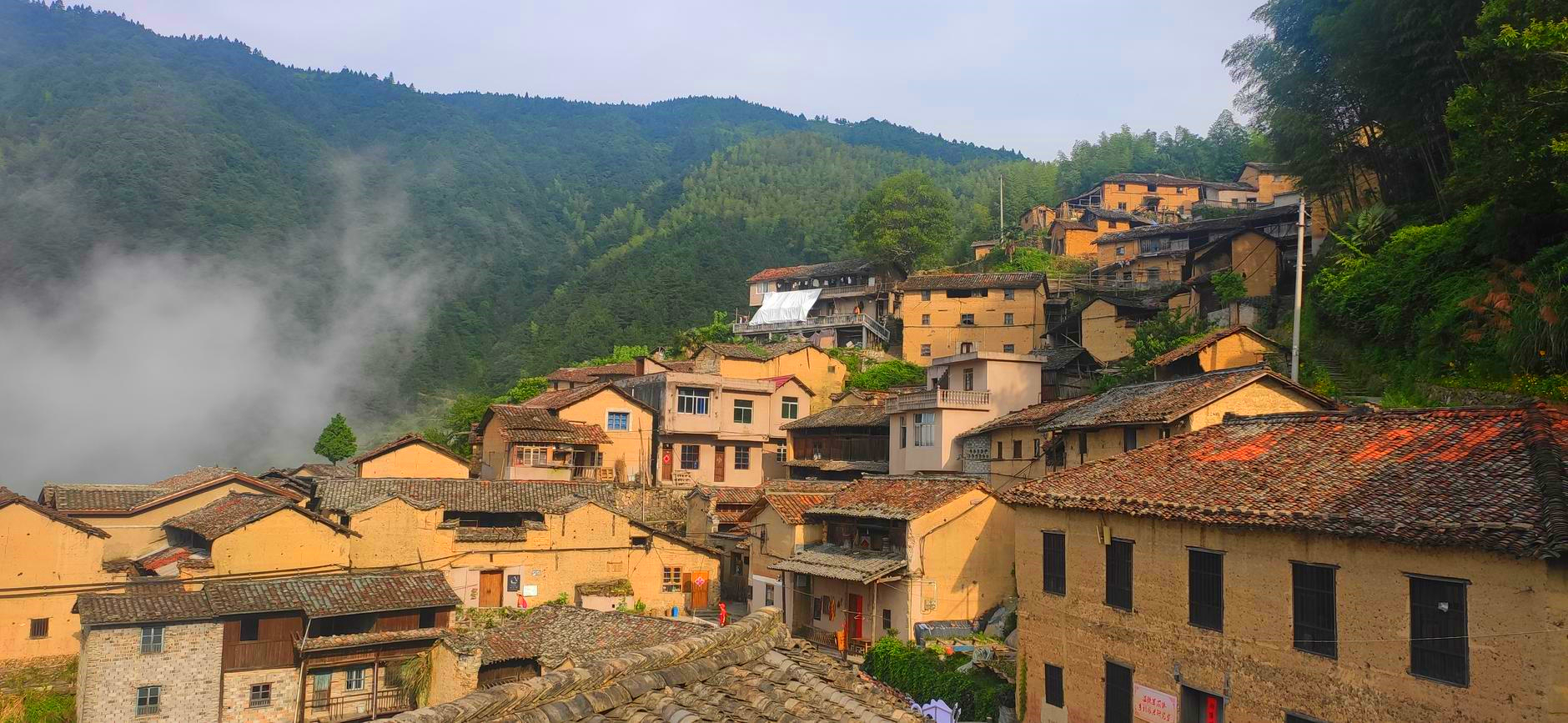 在松阳的山头,跳入眼帘的是一幢幢红色屋顶,黄色外墙的村寨。远远看去,就像一幢幢中世纪的城堡。在经济建设围追堵截的今天,这些依山而建、状如船型的风水村落,如此密集地存在着,使得原始文明的漏网之鱼,得以延续,这在全国都属罕有。在杨家堂村,太阳的柔光会把红墙照的通红,一幢幢土楼犹如中世纪的城堡。在村口的大樟树下祈福,坐看炊烟。在陈家铺,深入到村子内,打卡被CNN评选为“中国美丽书店”的【先锋书店(平民书局)】,书店著名的莫过于以悬崖山村为背景的落地窗景观,是众多游人必打卡之处。