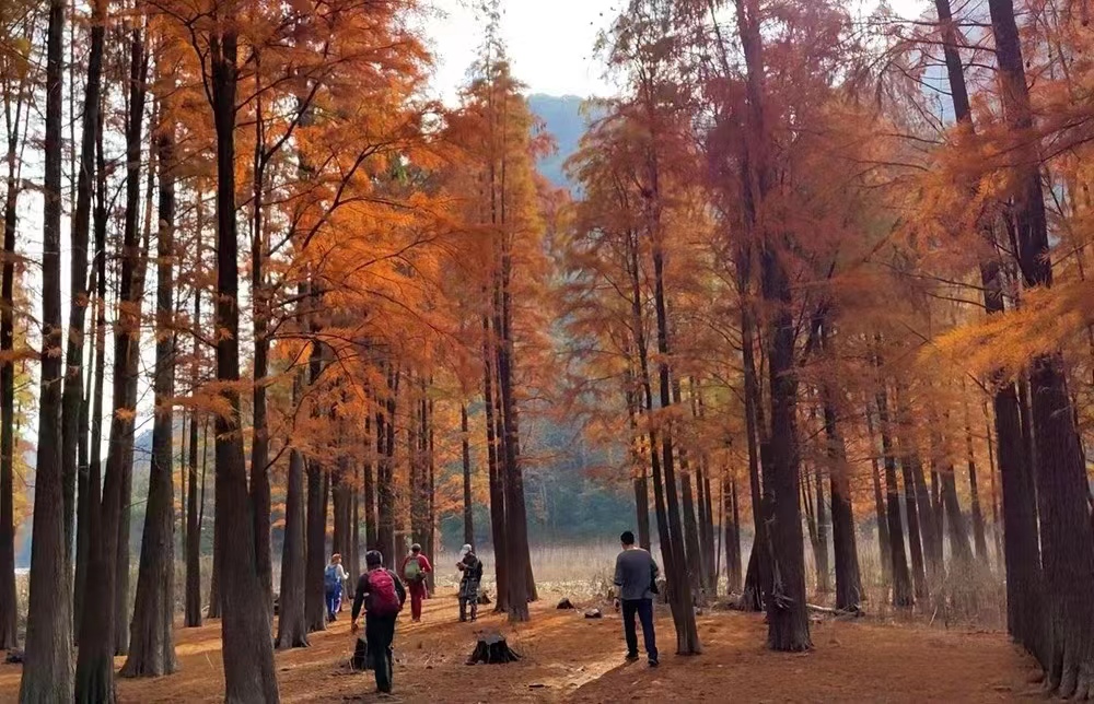 12:30左右,我们找个地方享受野餐,大家拿出各自带的美味佳着,一起分享吧。一路途径卖柴吞水库、水杉林、茶园、天湖景区等景点,全程约12公里左右,强度适中。